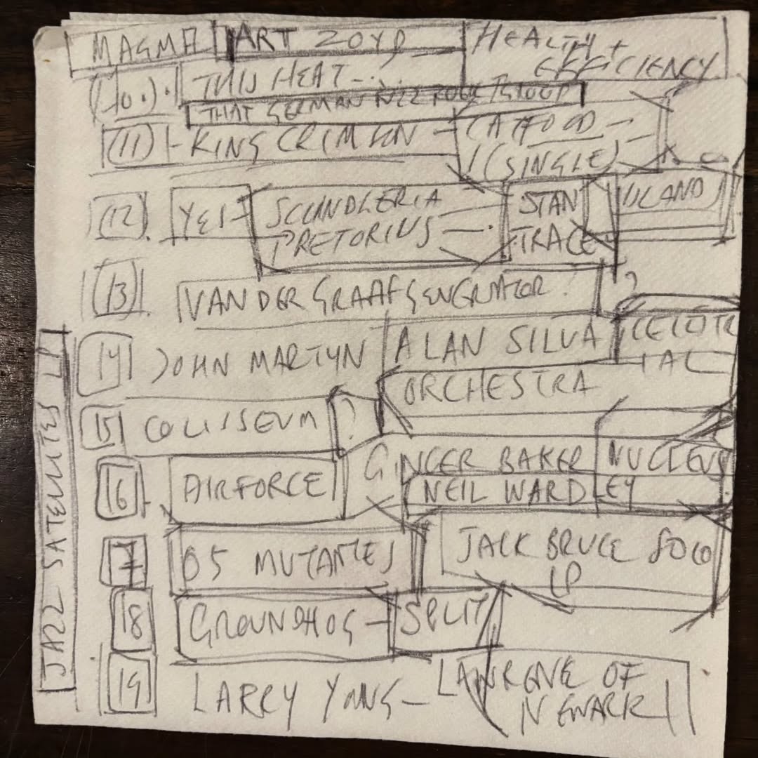 Spanning over four hours, the mix includes lesser-known collaborations by the Blue Notes, produced in the UK, that culminated in the mighty “Septober Energy” gathering via Centipede. The title of the mix is from The Soft Machine’s “Why are we sleeping?”. And the image is a napkin sketch of these trajectories by Kodwo.