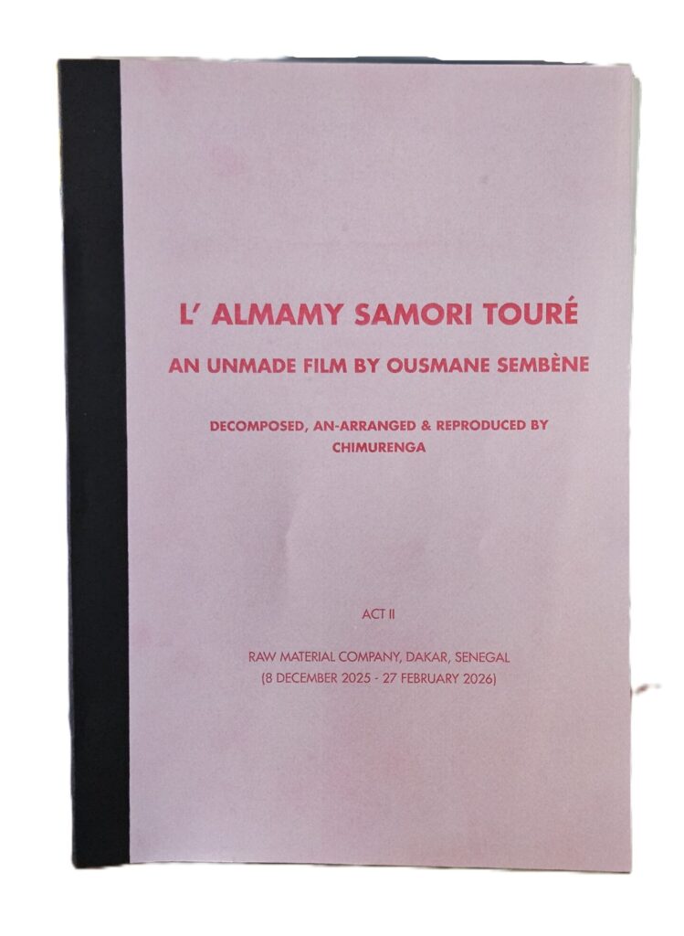 As part of Act II Chimurenga produced a research notebook on the process of investigating Ousmane Sembene’s lifelong, but ultimately unrealised film on Samori Toure.