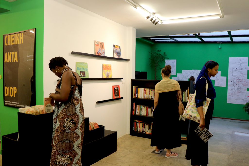 The second instalment brought us to Senegal, this iteration of our research, which takes the form of a bibliographic installation and live broadcasting studio, is a collective reflection on the production of an African historiography through creative practice, including film, music, theatre, visual arts, oral and written literatures, and more. Producing the working library in collaboration with RAW Material Company at their centre in Dakar where we held a week-long gathering bringing writers, artists and historians, to produce new knowledge on Sembene’s historic project. For a detailed program of the broadcast follow here.