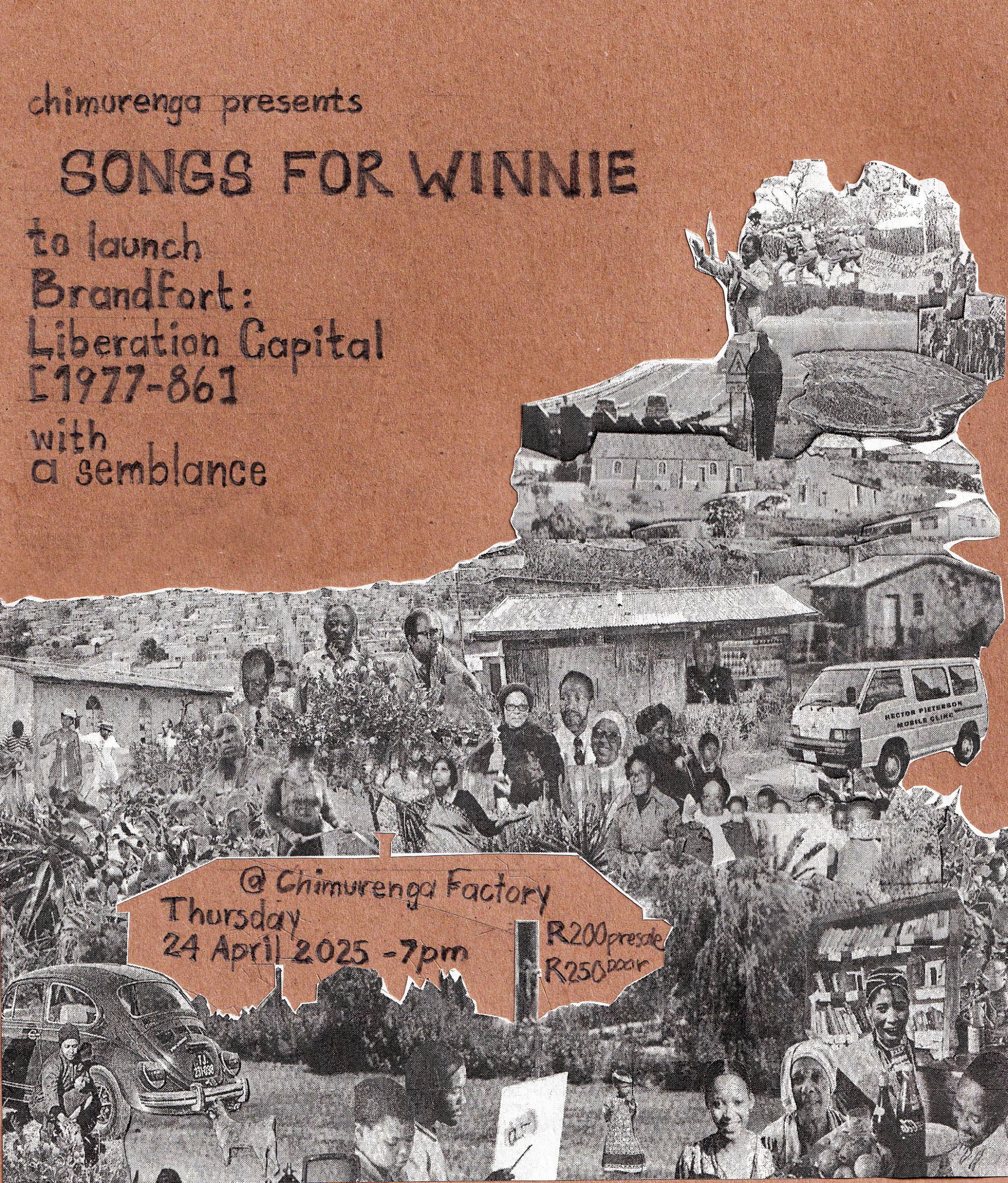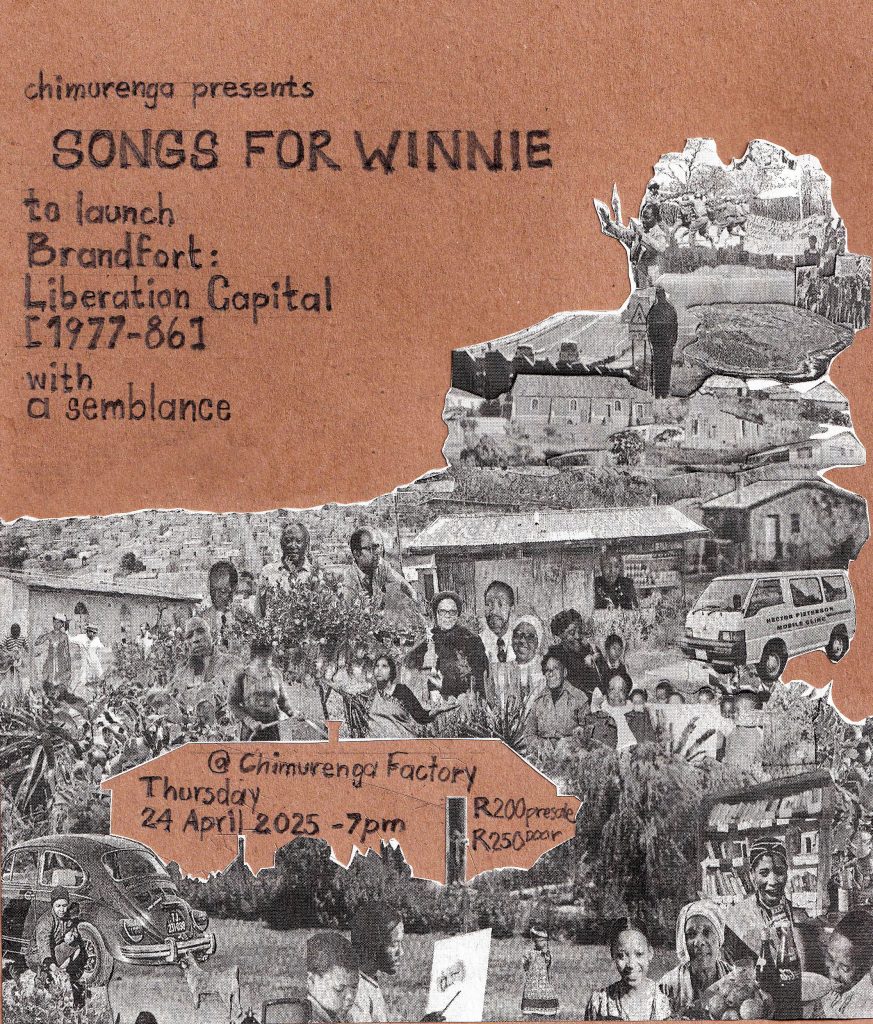 To celebrate the launch of a special edition of a Chimurenga Chronic – Brandfort: Liberation Capital (1977-86) we are proud to present a live performance by A Semblance, an experimental band headed by Cape Town based musician and historian Asher Gamedze. Through improvisation, A Semblance will perform a tribute to Winnie Madikizela-Mandela’s cultural work during the period of her banishment in Brandfort from 1977-86, as a form of expanding on the rich legacy of musical tributes to her during the Brandfort years.